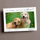 Modern engagement and save the date announcement that features your pets' photo, "Our Humans Are Getting Married" in a mix of simple typography and a stylish script, your first names, wedding date and location (you can personalize to "My Humans" for one cat or dog). On the reverse side, customize your save the date details and add your names (and the pets' names too) in a signature-like script.
