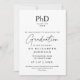 This white and black elegant PhD degree graduation announcement can be personalized with your graduation details and a photo on the reverse. Designed by Thisisnotme©