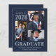 Budget-friendly dark blue graduation announcement featuring a 3 picture photo collage and "Graduate" in elegant modern white typography. Add your grad's name, class year and school or university.