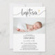 Plain white envelopes are included with paper invitations and will come to fit the invitation size you select. If you don’t need the envelopes, you may choose to not receive them by selecting the dropdown below "Envelopes" and choosing "None." If you’d like to have a design on your envelopes, you can browse all of these available envelopes to find the design that complements your Modern Photo Calligraphy Baptism Invitation.