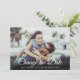 This modern photo of date card features an elegant script change of date above your details set in elegant typography over your own photo. The reverse has your special message details. Designed by Thisisnotme©