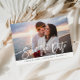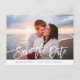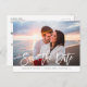 A modern photo wedding save the date card design with editable text and white brush lettering. Feel free to personalize the image and text.