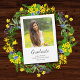 Class of 2025 Graduation announcement card, with a simple photo and an elegant script typography design. With gray customizable lettering, you can add your name and date. You also change the photo with your own image. Great for congratulating that special special graduate.