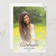 Class of 2025 Graduation announcement card, with a simple photo and an elegant script typography design. With gray customizable lettering, you can add your name and date. You also change the photo with your own image. Great for congratulating that special special graduate.