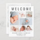 An elegant and budget-friendly birth announcement to introduce your newborn baby to family and friends. This design features "Welcome" across the top in large typography, a 7 photo collage and their name, birth date and birth stats in simple modern typography. On the back, add another photo and a personalized message.