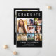 Modern black graduation announcement featuring "GRADUATE" across the top in large white typography, a seven photo collage and his or her name, class year and school in modern white typography. On the back add an additional photo and a custom message.