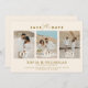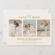Announce your upcoming nuptials with these beautiful and elegant photo wedding Save The Date cards. Featuring a sophisticated gold "Save the Date" script, this design showcases three of your cherished engagement photos. The soft, neutral color palette and minimalist aesthetic create a timeless feel, perfect for any wedding theme. Add your names and wedding details to create a truly personal announcement that your guests will adore. This card is designed to capture the joy and anticipation of your special day, setting the perfect tone for your wedding invitations to follow.