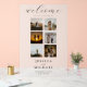 Create your own personalized wedding welcome sign with your personalized photo collage, elegant calligraphy script typography and modern minimal design.