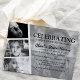 A modern funeral invitation featuring a background photo of your choice with a fade overlay and three smaller photo's of your loved one who has passed. This design is contemporary and a wonderful tribute to the deceased. The celebrating the life template is easily customized to your own memorial details.