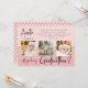 Modern photo collage Godmother proposal card. Design features 3 photos of the baby, typography script, will you be my Godmother on a pink and pastel blush pink background.