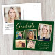 Modern Photo Collage Gold Script Green Graduation Announcement Postcard