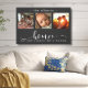 This stunning canvas wall art features a beautiful three-frame photo collage showcasing cherished memories, adorned with the heartfelt message, "Home, Not Just a Place, But a Feeling." The elegant black and white design, combined with exquisite script and print typography, creates a sophisticated and enduring piece that will complement any interior style. Personalize it with your family name. Created by Simply Farmhouse Press.