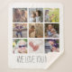 A gorgeous photo collage blanket featuring 9 pictures of your choice and text that can easily be customized. Background can be changed to any color.