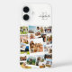 Create your own modern photo collage iPhone case featuring 21 of your favorite pictures in a trendy overlapping scrapbook photo style design. Add your own personalized monogram initial in minimalist typography and name in elegant script calligraphy.