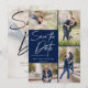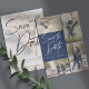 Take your 5 best images from your engagement photo session with 4 for the front and one for the back. It features a hand lettering design that says Save the Date.