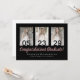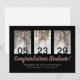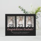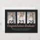 Elegant custom graduation card design featuring rose gold and silver text over a black background, modern script typography with the words "Congratulations Graduate" (in rose gold) with your name and school or university (in silver) and date plus three of your favorite photos on the front of the card. Templates for your message and name(s) are on the back of the card.