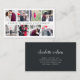 Chic and elegant business cards for photographers feature eight of your best photos arranged in a collage layout, bisected by your name or business name in modern lettering. Add your full contact details to the back in crisp white on a soft off-black background.
