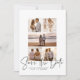 With five photos and a modern script written "save the date," this card is the perfect way to announce your engagement and upcoming wedding to friends and family. The black text is bold and modern but still sophisticated. The customizable text on the front has room for names, date, location and other information like a wedding website. The front also has 4 square photos and one horizontal photo spot. The back is a black and white striped pattern. The black color is editable by clicking "Customize."