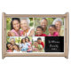 Modern 5 photo collage serving tray with family name. Easy to change the text and replace the photos with your own. Fun, trendy keepsake.