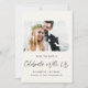Modern light cream elopement or private wedding announcement and reception save the date featuring your photo in a "Mr & Mrs" frame, "Celebrate With Us" in a chic script and your names, reception date and location in simple typography. On the back, personalize your announcement and add your names in a signature-like script.