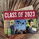 Modern three photo design graduation announcement is customized with three photos, year of graduation, name and name of school. Print or download a digtal version to share with family and friends.