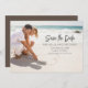This design features save the date wedding photo with a trendy QR code a simply elegant, stylish calligraphy cute unique design, vintage handwritten beautiful simple, modern traditional minimalist minimal, photo couple picture 1 one, white text engagement chic trendy, teal whimsical script typography font, photo save the dates, engaged full photo bleed overlay, modern calligraphy handwritten script