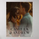 A modern type overlay with large names and a full bleed photo are the features on this wedding sign.