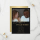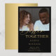 Modern minimalist elegant wedding save the date simple white card with a chic trendy "better together" faux yellow gold metallic calligraphy script over a black bacground. +++++++++++ Easy to personalize with your details!