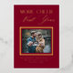 Share your joyful news in timeless style with this Modern Holiday Pregnancy Announcement Card, featuring a chic gold-foil inspired photo frame set against a gender neutral festive dark red background. Your sonogram or personal photo becomes the centerpiece of this sophisticated layout, complemented by clean modern typography and a warm holiday greeting.