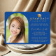 Modern Photo Gold Cap Script on Blue Graduation Announcement