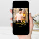 Frameworthy 1st Wedding Anniversary Card. The photo template is set up for you to add your favorite picture, which is displayed in square format. The design features modern oversized typography and brush script in black and gold.