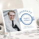 This modern design features the text "Graduate" and the editable text for your name, class, school and proud parents (or your preferred text) in popular blue typography on a white background. Add your own photo on the left of the card. On the reverse of the card are five vertical lines. Personalize by editing the text in the text box.