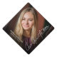 This graduate cap topper features a full photo and trendy handwriting script text overlay. Personalize with a photo of the graduate, grad's name and school.