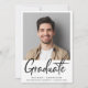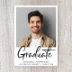 Celebrate a major milestone with this clean and contemporary graduation photo announcement, designed to put the graduate front and center. Featuring a bold handwritten script “Graduate” paired with a classic white background, this design strikes the perfect balance between modern style and timeless elegance. The minimalist layout highlights a single standout portrait while showcasing the graduate’s name, school, and class year. Ideal for college or high school graduations.