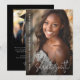 Photo announcement card featuring your photo with the name of the graduate in a modern, white script font and the name and year aligned to the left over a dark overlay. Additional photo and custom message on the back.