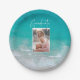 Modern geometric multi photo graduation ocean beach modern travel adventure paper plate. Featuring on trend script text and stunning beach ocean photography. Class of 20xx also available. Part of a collection.