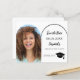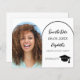 On front: Add your own vertical size photo of the graduate. Photo arch frame. A chic white background, black text. Templates for a name and date. The name and the text: Save the Date are written with a modern hand lettered style script. With a cap, tassel topper.