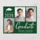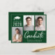 Modern budget-friendly green graduation party invitation featuring a 3 photo collage, "Graduate" in large white letters and the grad's class year, name and school or university in simple white typography. Add your party details on the back.