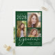 Modern green graduation announcement and party invitation postcard with a 3 photo collage, "Graduate" in an elegant white script and the grad's name, class year and school or university in simple white typography. On the reverse side, add an additional photo and the graduation party details.