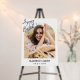 Create your own custom photo birthday sign featuring modern script calligraphy happy birthday and minimal typography name and date design for personalized birthday decor.