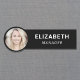 Modern photo ID black name tag. Upload the employee's photo and add their name and title in simple white typography.