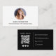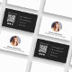 This design features a simple business card with social media and a QR code for your website or social media, with your logo here, or photo, with a gold theme and a modern minimal, simple minimalist design with connect with us, website email mobile phone, Instagram follow us information.