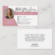 Modern, trendy Notary photo business card features single photo, contact details on a rose gold and white background. Personalize further with your services and social media on the back.