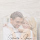 This invitation will set the tone for your modern elegant wedding. This all in one wedding invitation features your favorite photo with a sheer white overlay and modern dark gray typography. Your guests simply tear off the cobalt blue RSVP card which has been preprinted with your address and mail it back to you. You can handwrite your guests name and mailing address on the front of the card