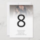 Modern Photo Overlay Guest Names Table Number. Simply replace the sample image with your own and easily personalize the table number and the names of your guests on that table. The same design is on the other side and will update simultaneously as you make your changes.