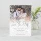 Modern Photo Overlay QR Code Script Wedding. With a QR code to your wedding website on the back so your guests can easily visit your wedding website. Your QR code will be automatically generated to update the sample code in the design, when you simply change the sample URL in the template with your own wedding website URL. Save The date is in a stylish set script. Replace the sample photo with your own favorite and personalize the rest of the text.