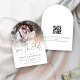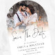 Modern Photo Overlay QR Code Script Wedding Arch Shape. With a QR code to your wedding website on the back so your guests can easily visit your wedding website. Your QR code will be automatically generated to update the sample code in the design, when you simply change the sample URL in the template with your own wedding website URL. Save The date is in a stylish set script. Replace the sample photo with your own favorite and personalize the rest of the text.