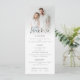 Modern Photo Overlay Script Wedding Menu. An informal set typography in black for the main heading Menu complementing the rest of the text which you can easily personalise. Replace the sample photo with your own favorite.