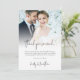 Modern Photo Overlay Script Wedding Thank You. Available digitally or Printed. Change text as required and replace the sample photo with your own favorite and personalize the rest of the text. With a QR code to your wedding photo gallery website on the back for your recipients' convenience. Your QR code will be automatically generated to update the sample code in the design, when you simply change the sample URL in the template with your own wedding website URL Or delete if not required.