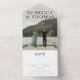A modern type overlay with large names and a full bleed photo are the features on this all in one wedding invitation with tear off response card.